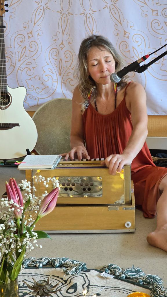 Les mantras sont des chants anciens, transmis de bouche à oreille, porteurs de sagesse et de guérison. Une phrase simple est chantée et reprise en chœur, accompagnée par l'harmonium, ou la guitare.